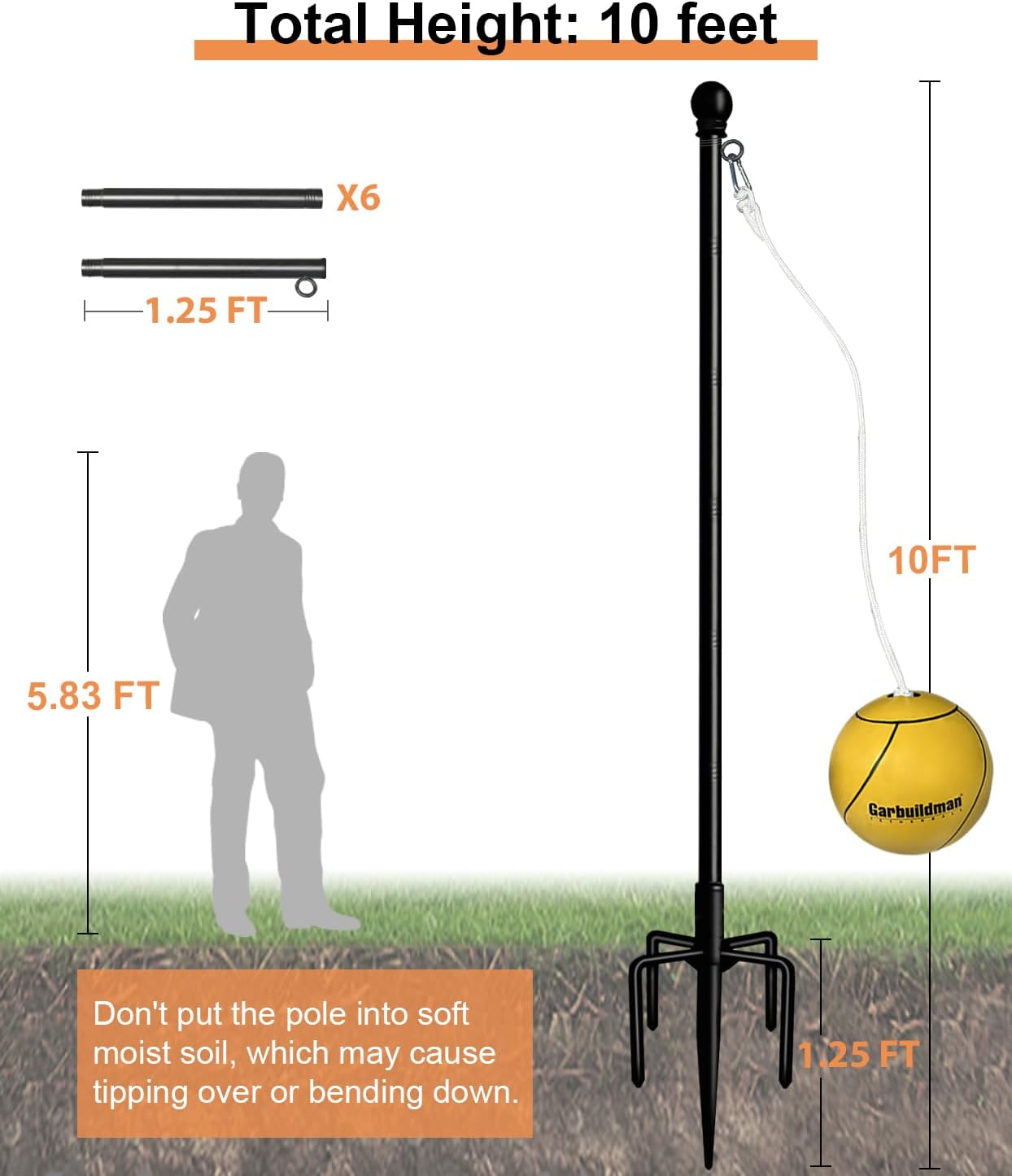 Garbuildman Tetherball Set review: durable, adjustable pole with reinforced 5-prong base, regulation ball, easy setup – ideal for backyard family and park play.